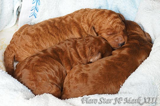Flare Star JPでは、2020年4月6日に 「Mark XIII」の子犬が生まれました。牡2匹と牝1匹の元気なアプリコットとレッドの赤ちゃんです。写真はインスタグラムやブログやラインに掲載しています。ホームページのリンク部からアクセスをご確認ください。 両親は、スタンダード・プードル犬種に薦められる遺伝性疾患検査を受けて結果はすべてクリアです。 ☆ 2020年6月13日をもちまして「Mark XIII」の新飼主募集を終了致しました。我が犬舎の子犬を希望する方は、気軽にお問合せ下さい!