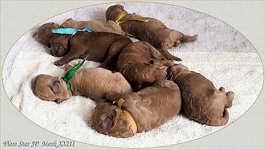 Flare Star JPでは、2023年8月12日に 「Mark XXIII」の子犬が生まれました。牡4匹と牝3匹の元気なレッドとアプリコットの赤ちゃんです。 ☆ 2023年10月28日をもちまして「Mark XXIII」の新飼主募集を終了致しました。我が犬舎の子犬を希望する方は、気軽にお問合せ下さい!